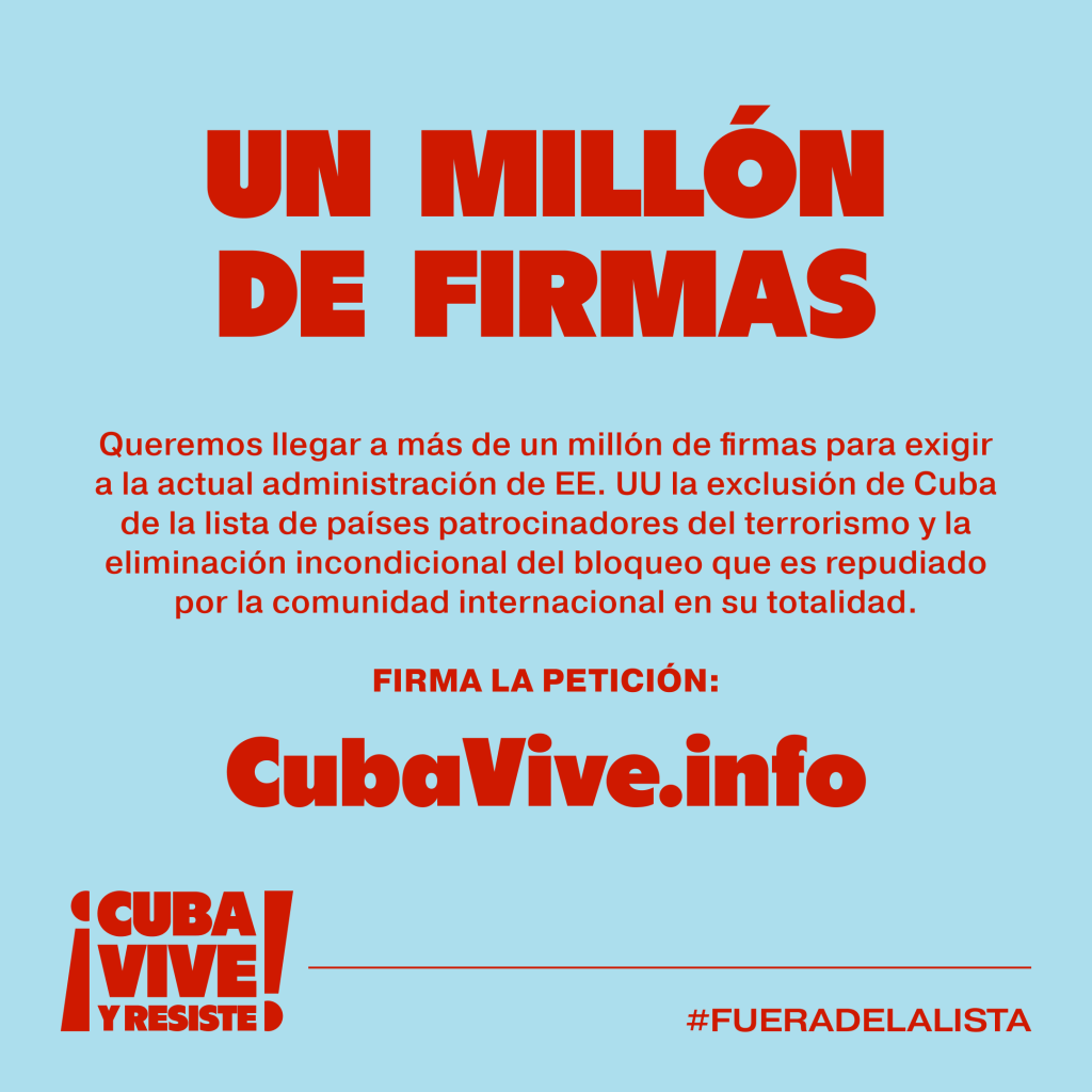CAMPAÑA: 1 MILLÓN DE FIRMAS PARA SACAR A CUBA DE LA LISTA DE ESTADOS PATROCINADORES DEL TERRORISMO
